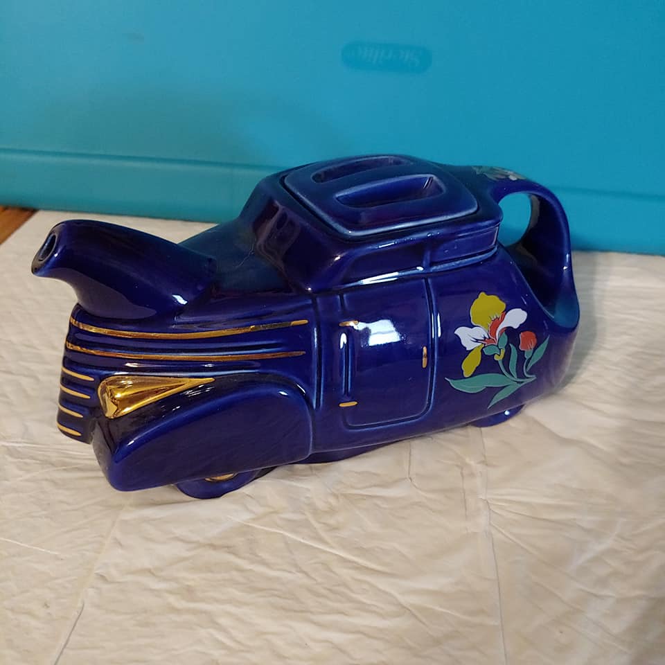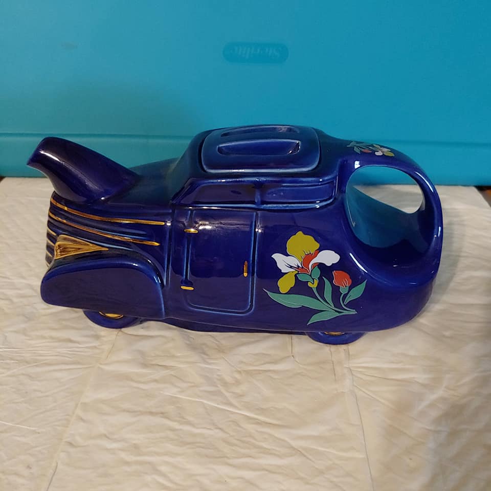 Hall Blue Deco Blossom Automobile Car Teapot