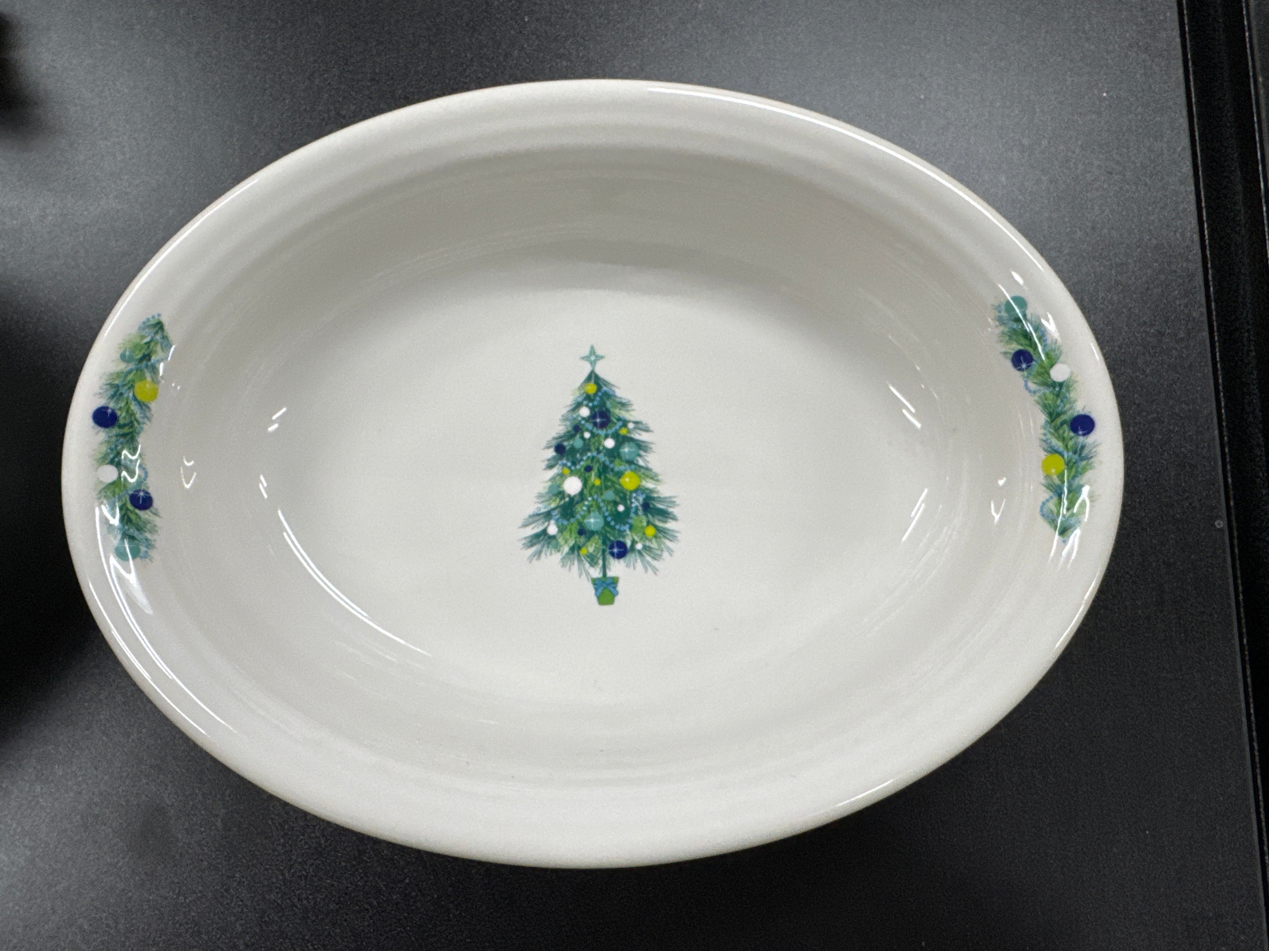 Large Christmas Blue Tree Oval Vegetable Bowl