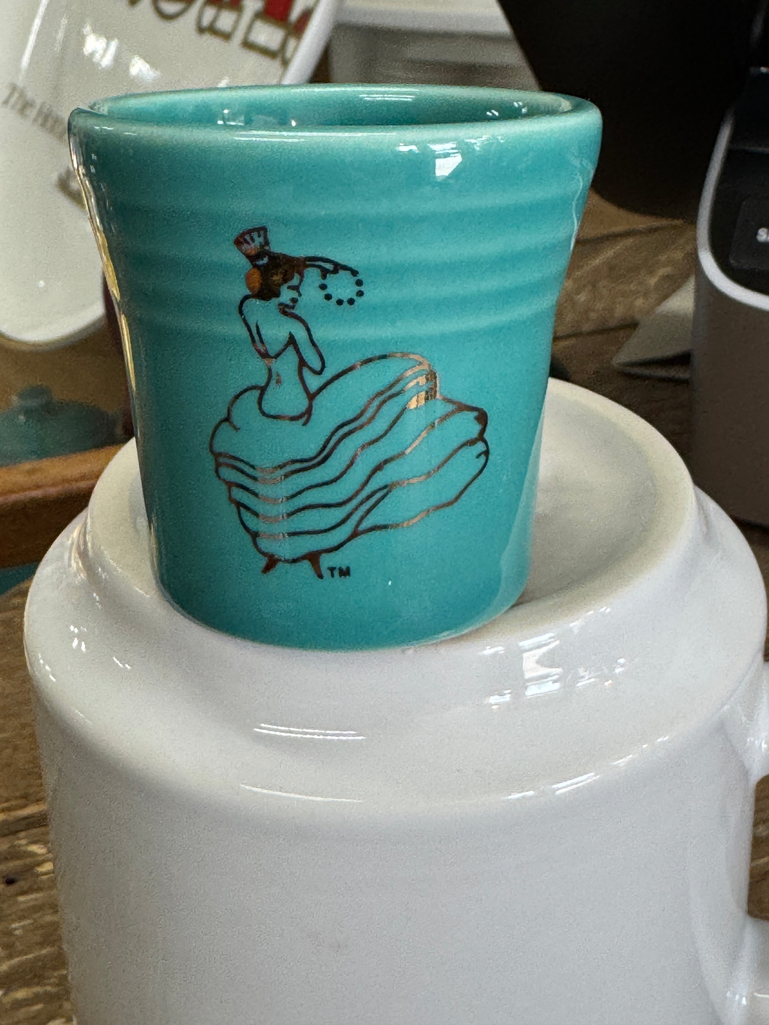 Decorations, The Gold Dancing Lady and Fiesta Tableware with Liz's Signature.