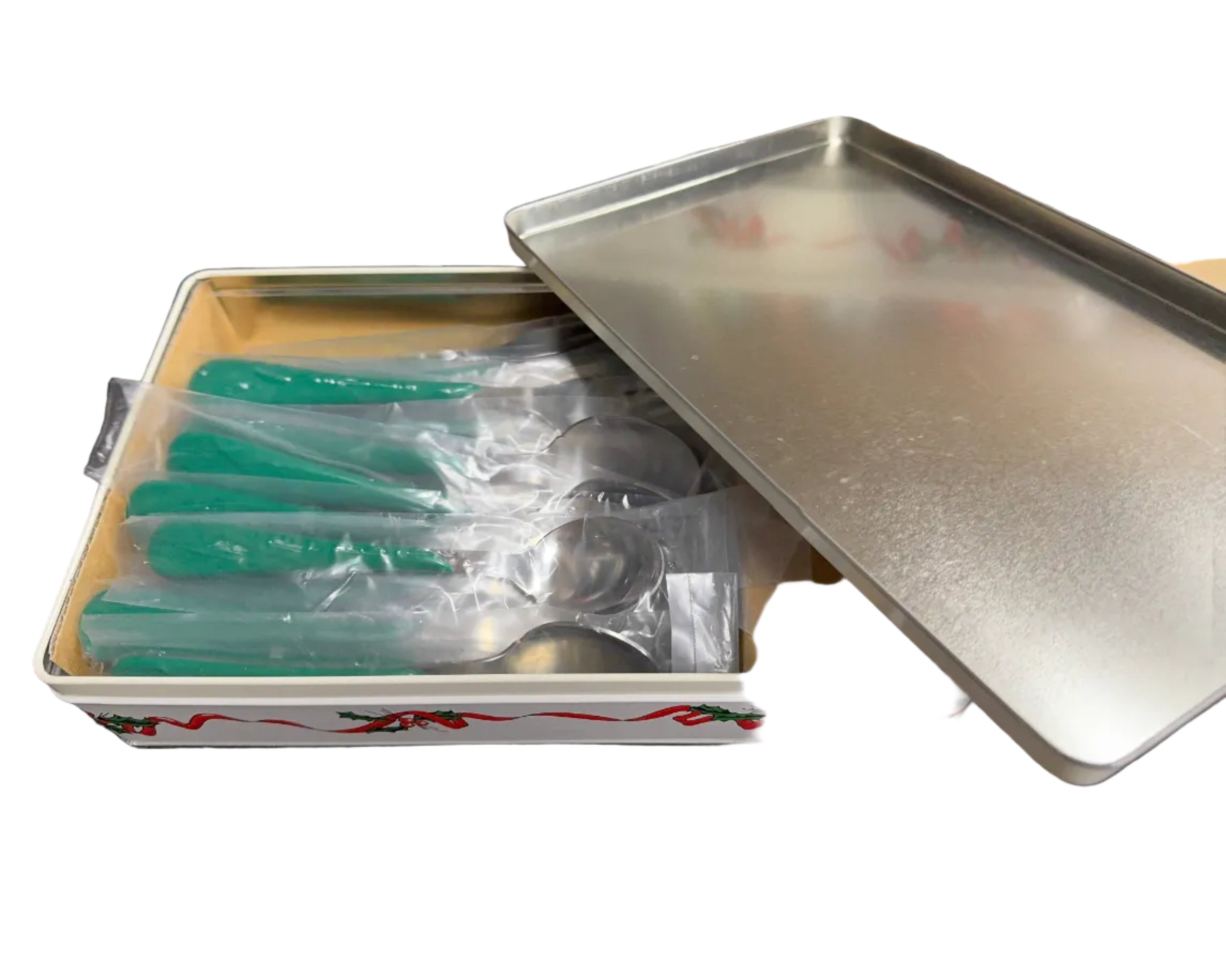 SPECIAL EDITION HOLIDAY COLLECTION GENUINE FIESTA STAINLESS STEEL FLATWARE SETS BY THE HOMER LAUGHLIN CHINA COMPANY IN NEWELL WV - 20 Pc Green SET.