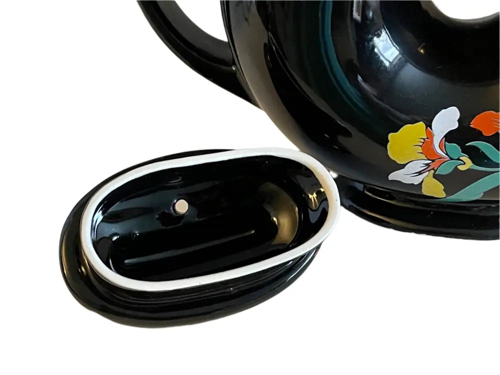 Here we have the sample piece making it a 1 of a kind, Doughnut Teapot, of Blue Blossom, by China Specialties, This is done on Black... only one to exist. Perfect condition.