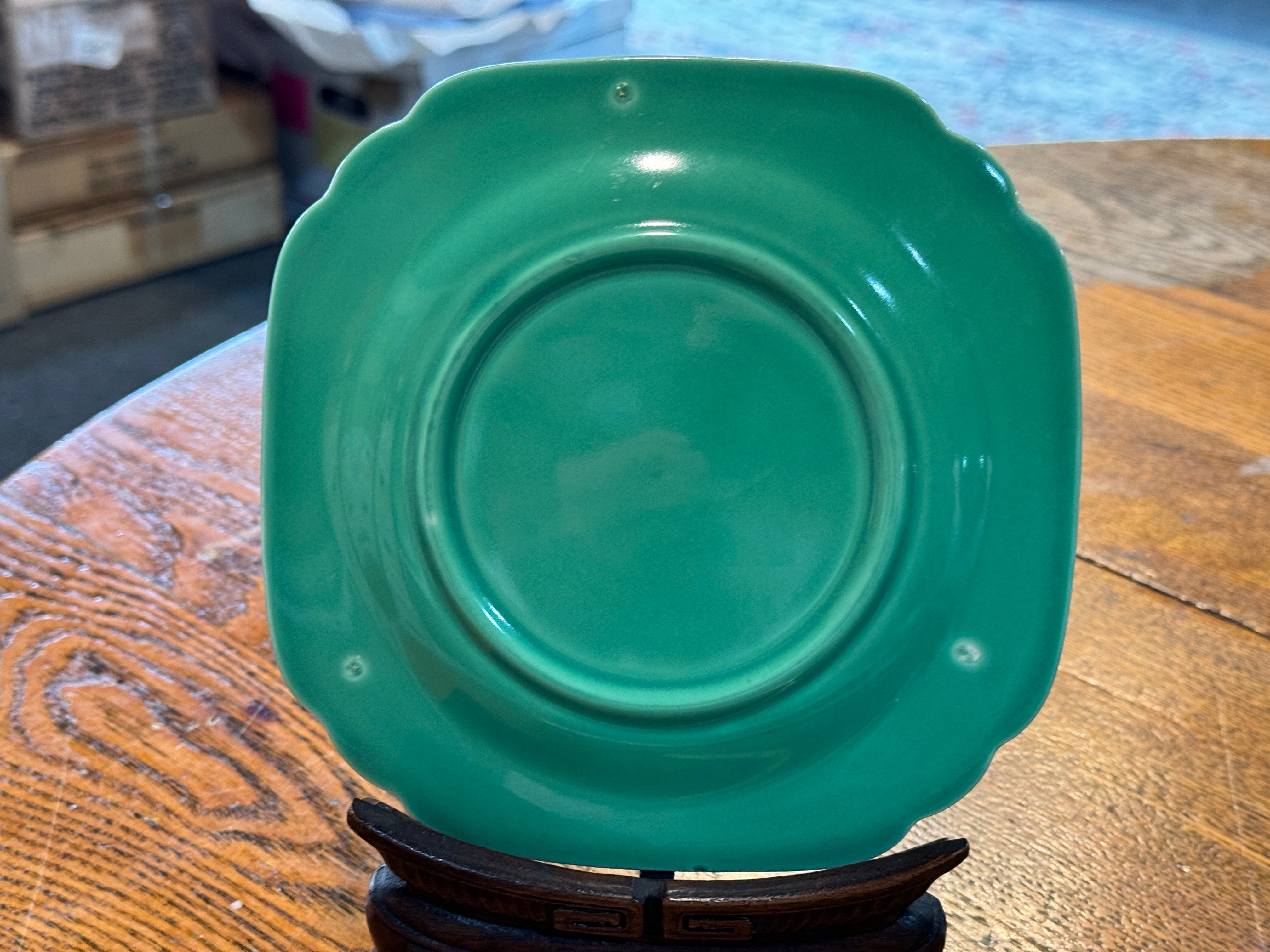 Homer Laughlin's Century Shape line features a  green color and Art Deco style.