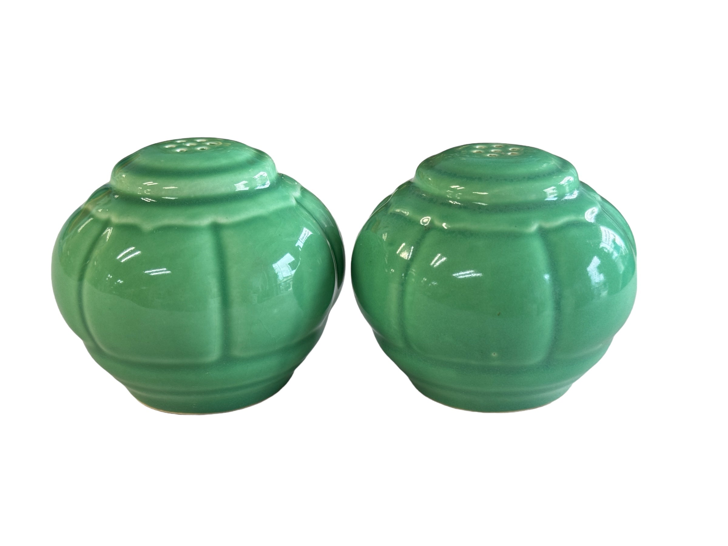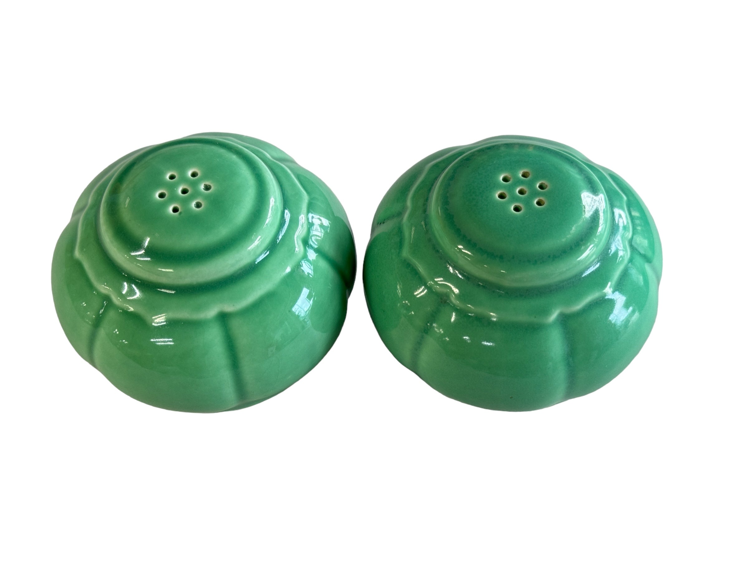 VINTAGE 1930S 1940S HOMER LAUGHLIN RIVIERA TANGO GREEN SALT & PEPPER SHAKER