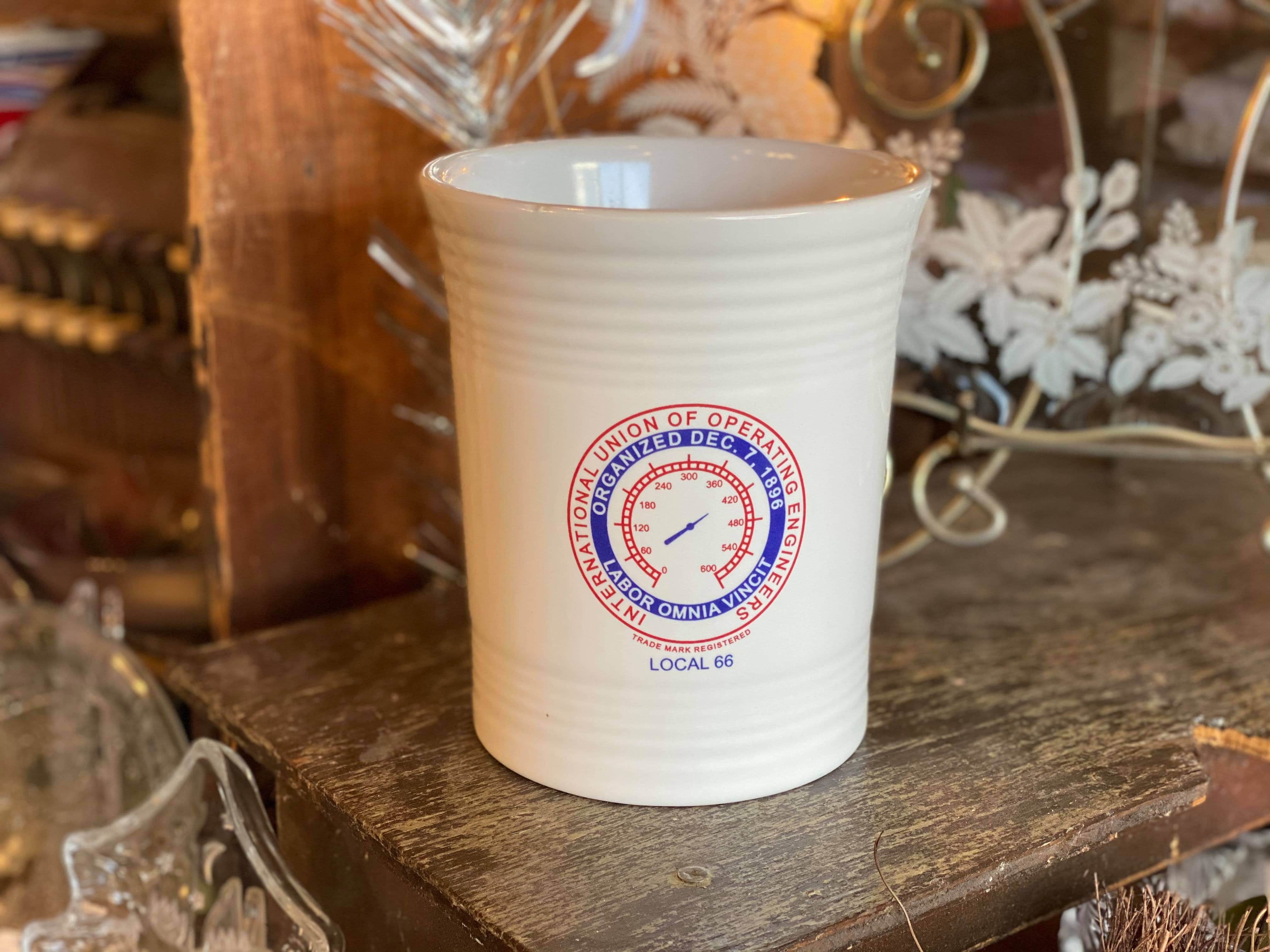 Here is a special, limited edition International Union Operating Engineer Local 66 Utensil Crock. HTF, Limited... White in Color, New in Box